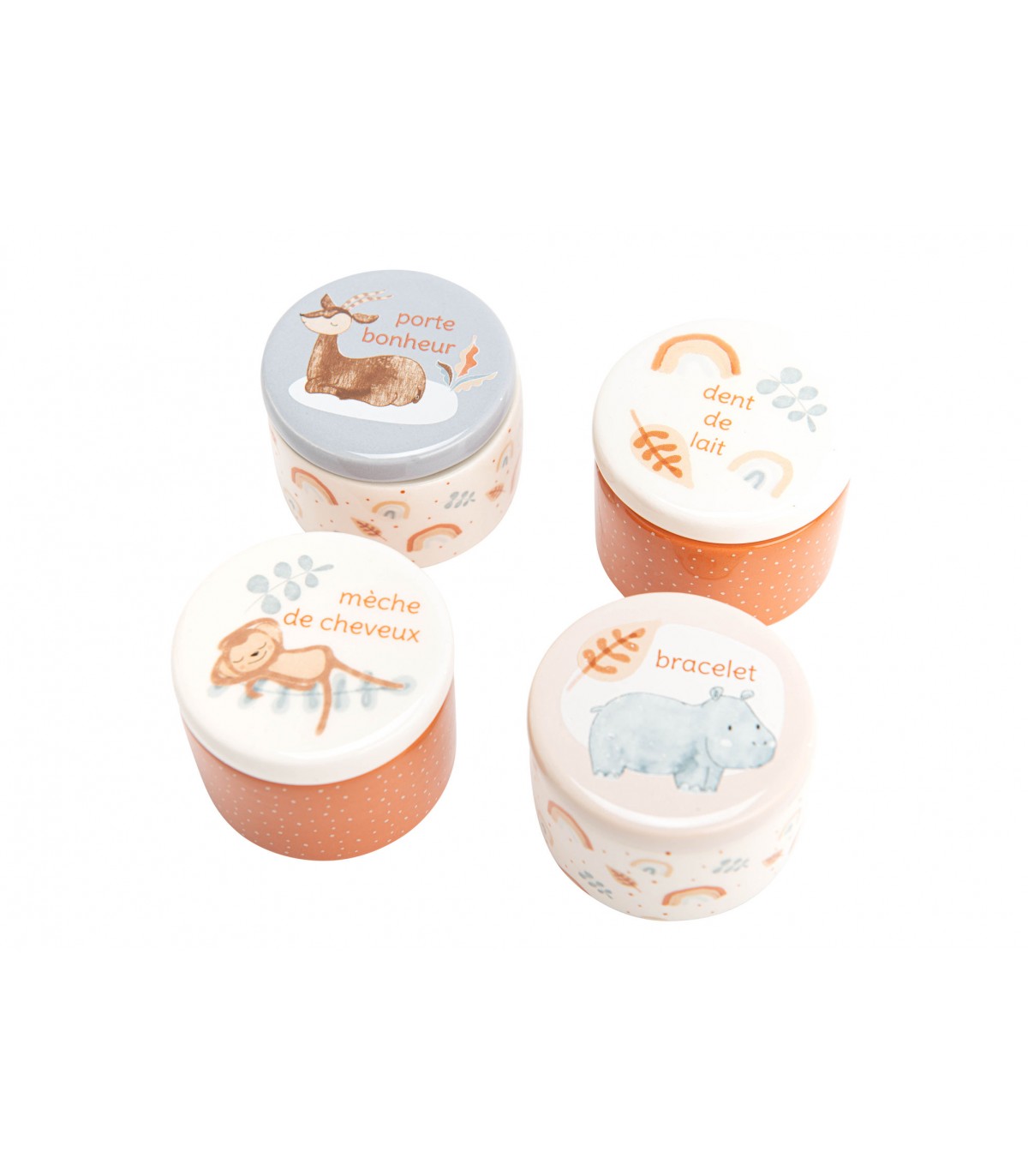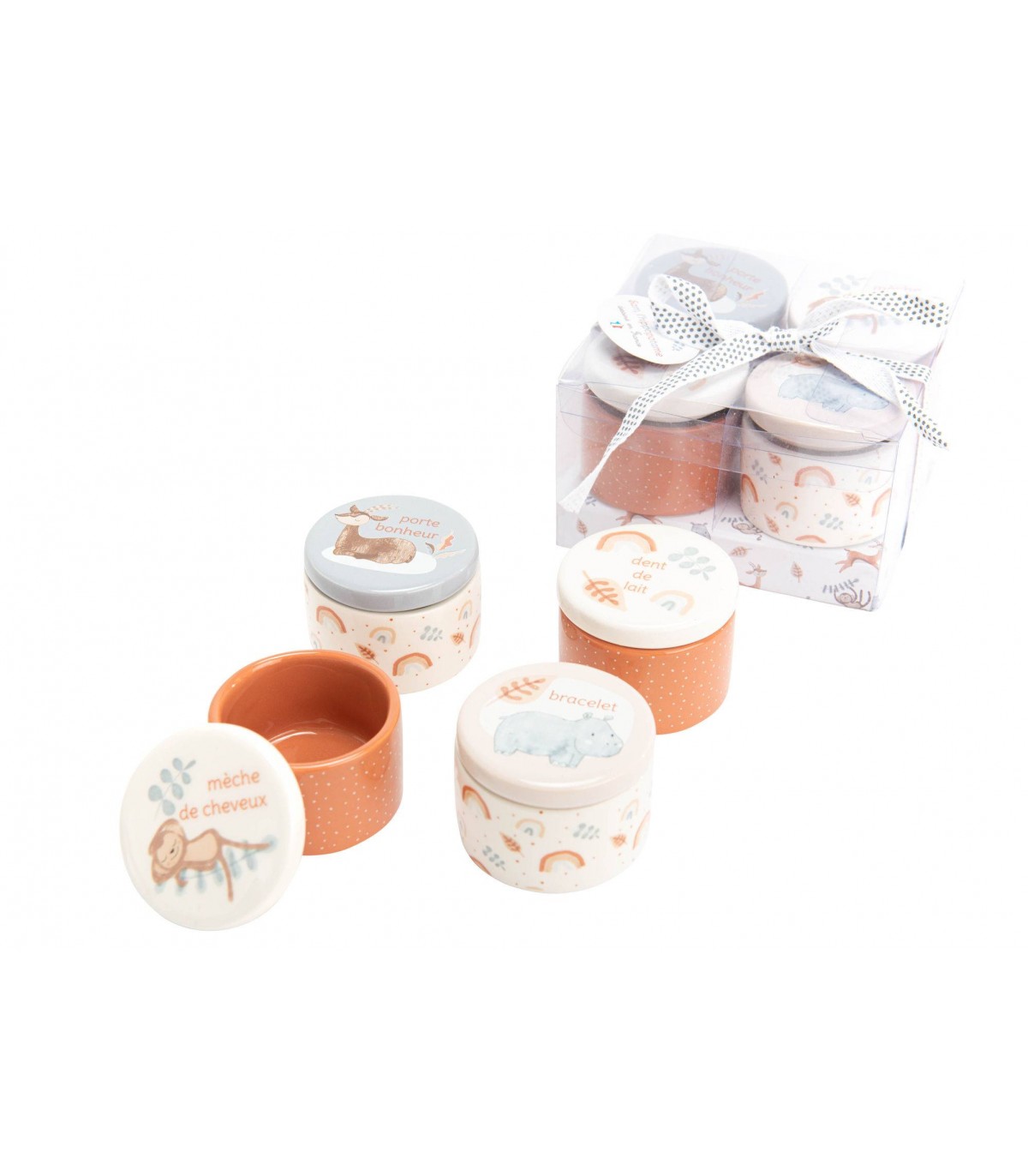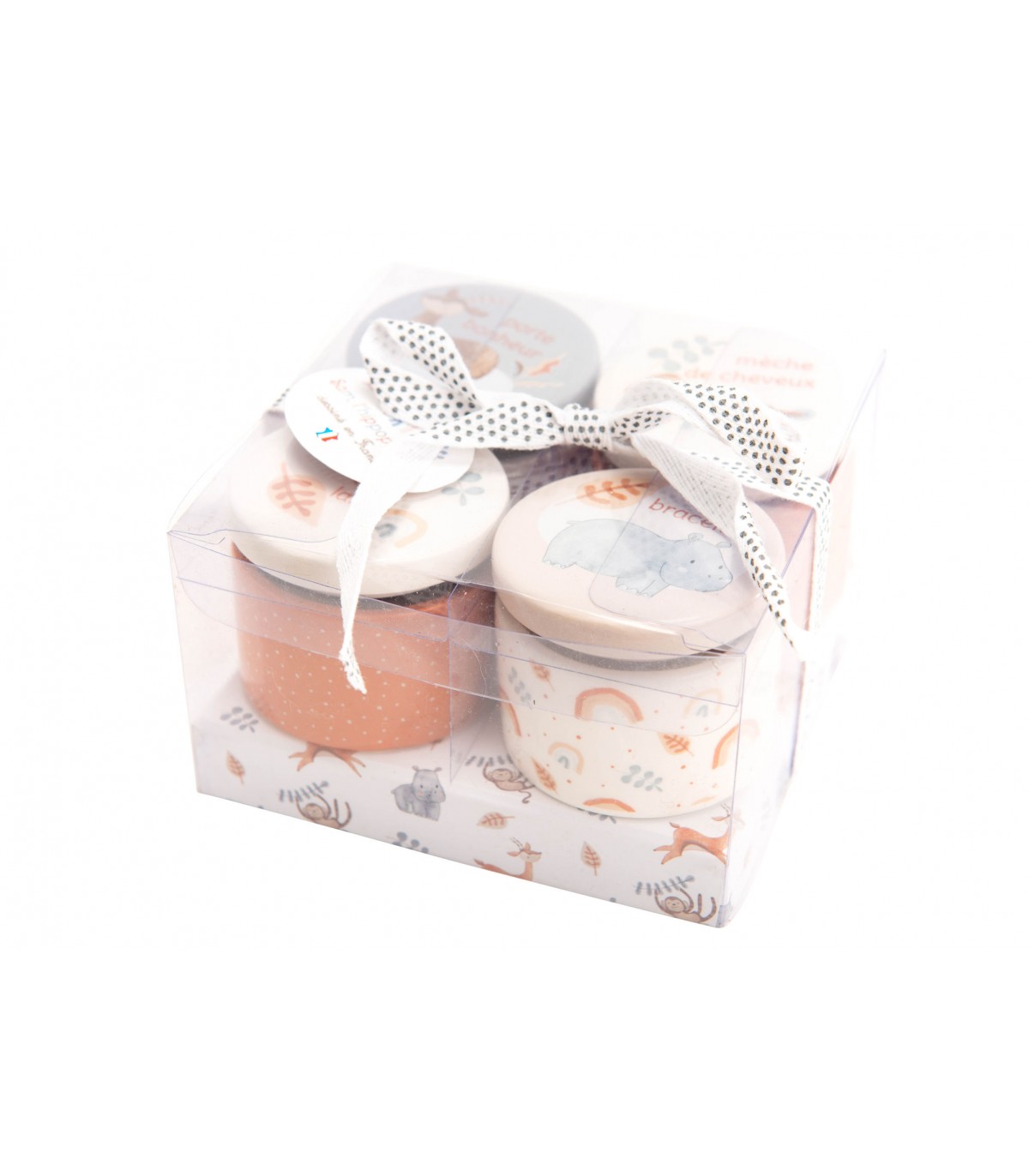 Esta caja de regalo para recién nacidos hecha de dolomita es ideal para complementar una gama de cajas de almacenamiento dedicadas a bebés. Sus dimensiones compactas (17x17x5 cm) y su diseño cuidado con patrones suaves la convierten en un producto atractivo para clientes que buscan artículos prácticos y estéticos para regalar u organizar los primeros recuerdos del bebé.