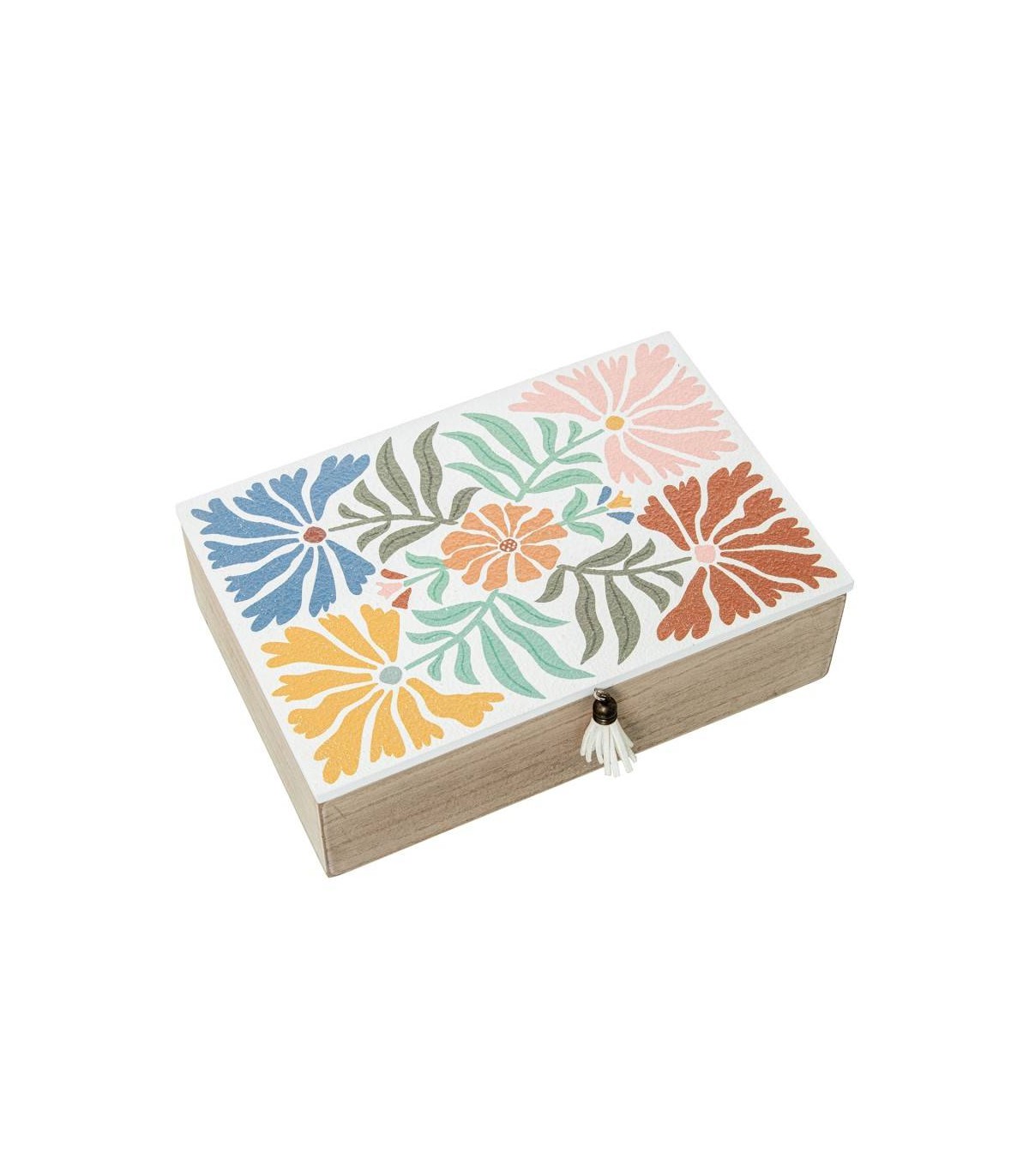 Caja Madera Decorada Flores Colores 24x16x7cm