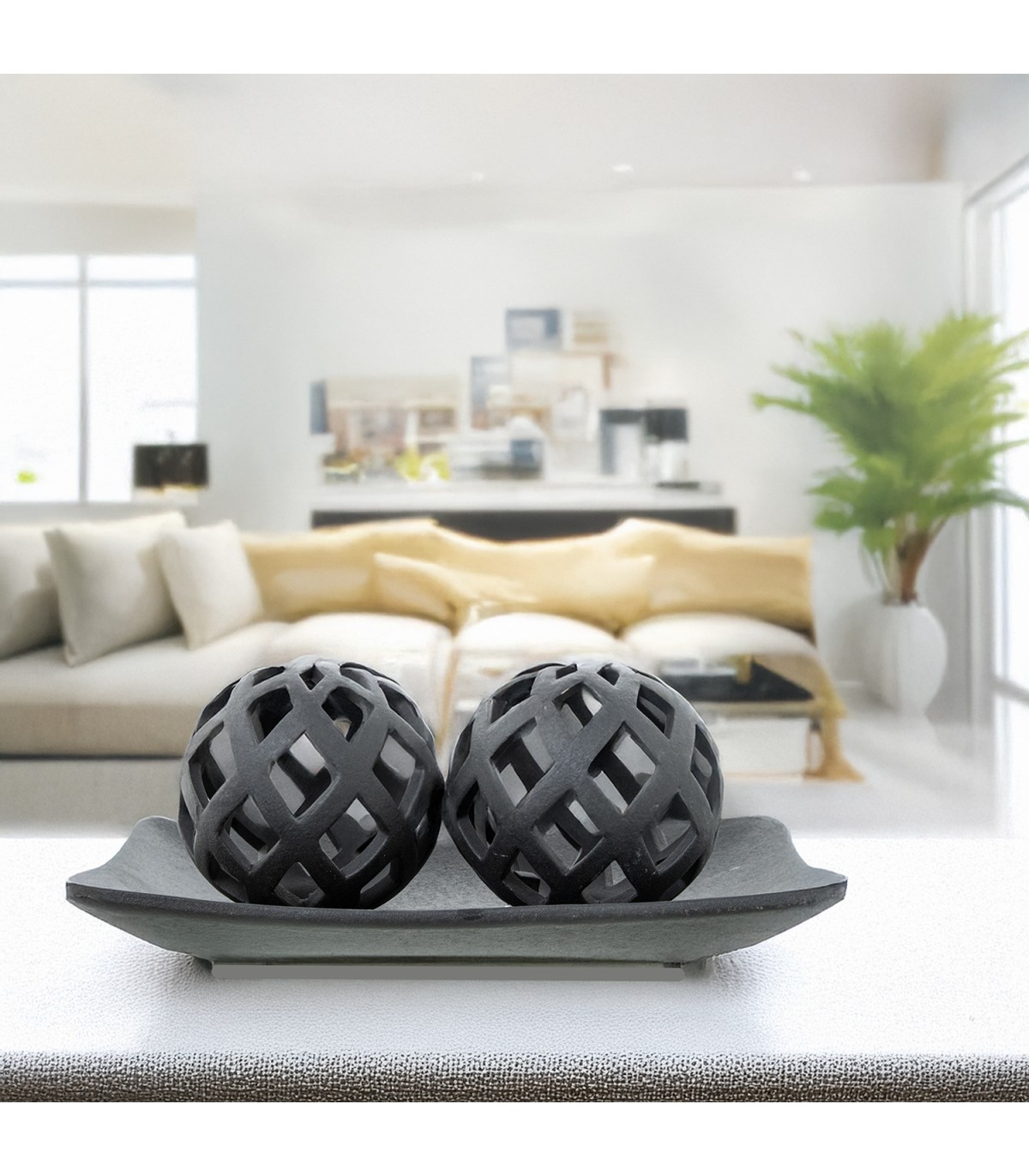 Centro Rectangular Ceramica Negra 26x16x3,5cm 61738