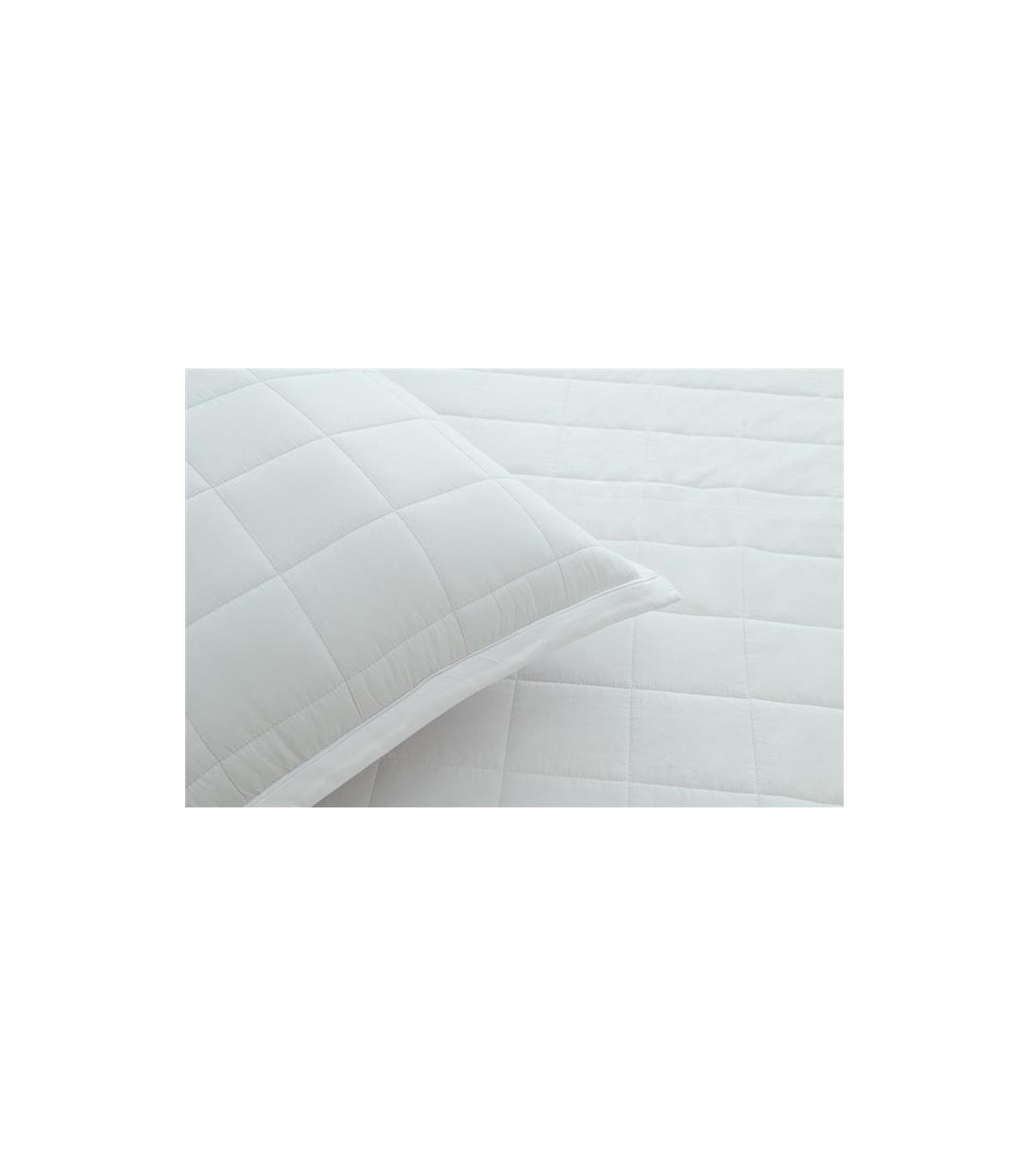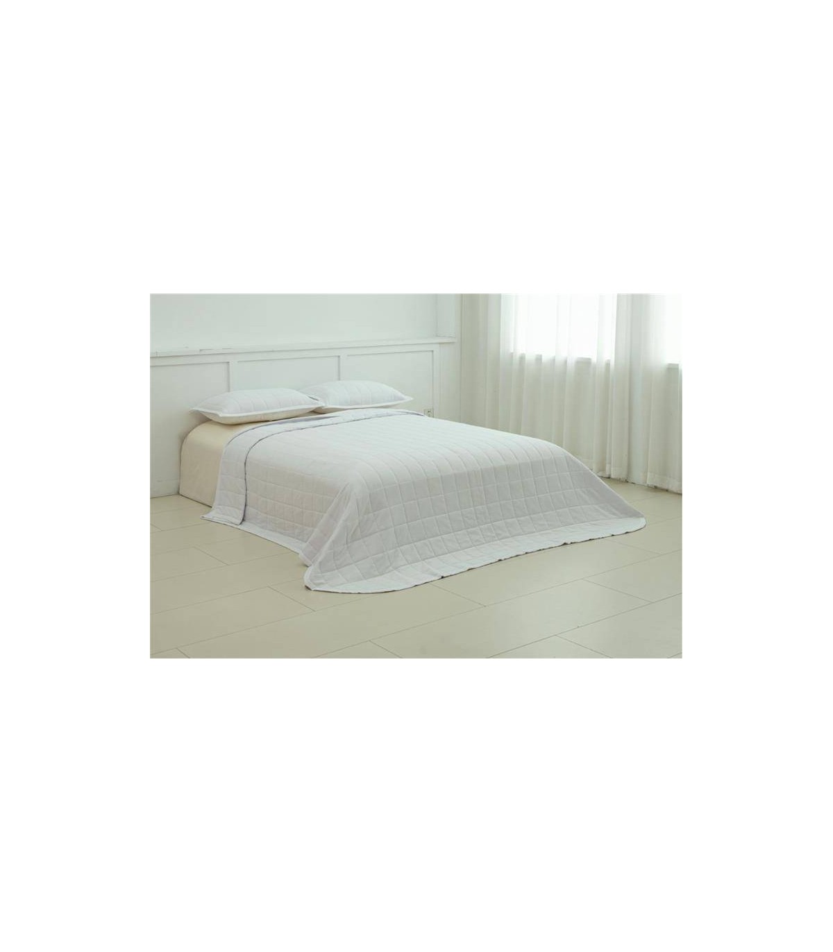 Conjunto de colcha guateada a cuadros y dos cojínes a juego de 50X70. Guateada con un relleno ligero que le aporta relieve y su tejido lavado a la piedra un tacto muy muy suave y agradable. Este conjunto es ideal como colcha para entretiempo y verano. Todas las medidas incluyen dos cojínes, el relleno de las fundas de cojín está incluido.