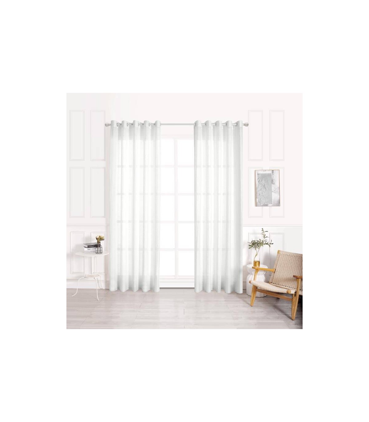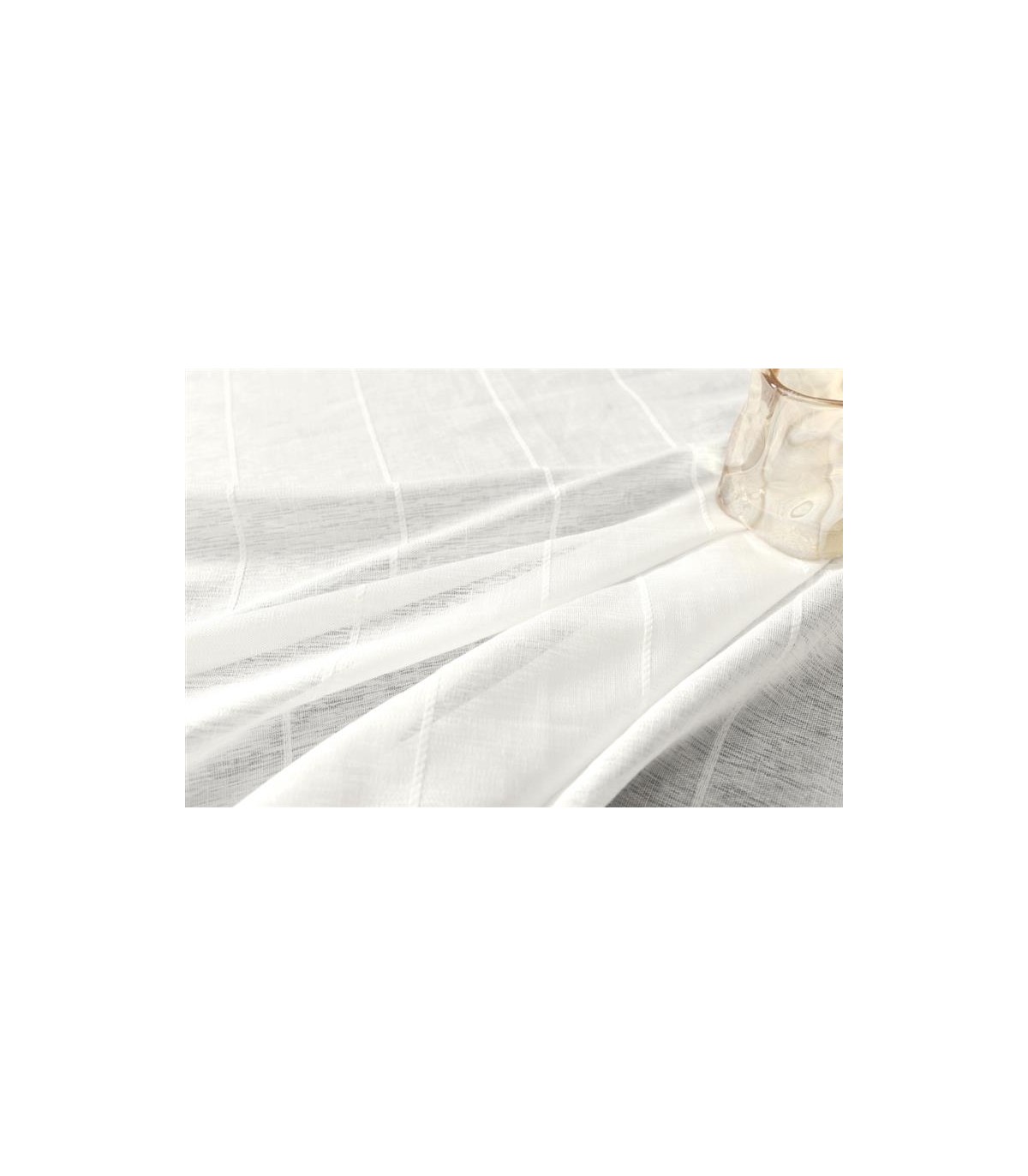Visillo confeccionado con ollados para introducir directamente en la barra que tengas instalada en la estancia. Su diseño de rayas y su textura resulta muy elegante.