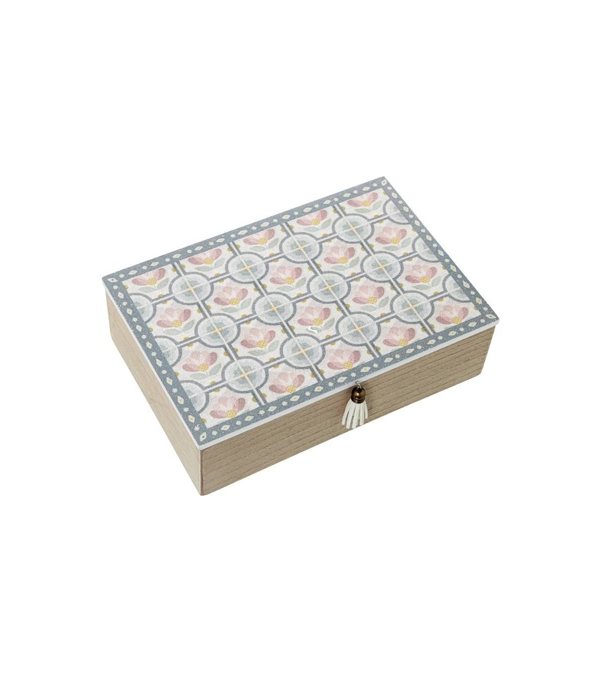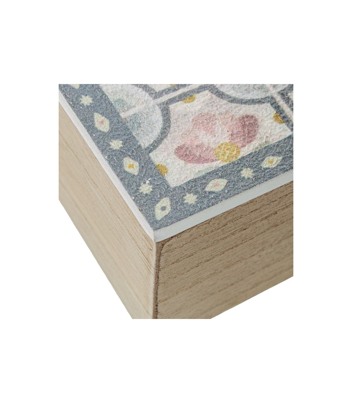 Caja Madera Decorada Azulejos Flores 24x16x7cm 25105