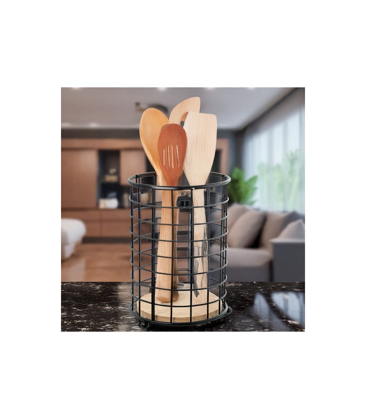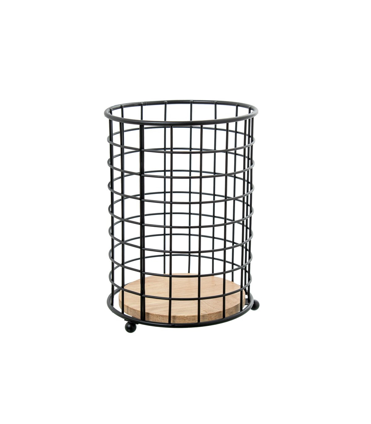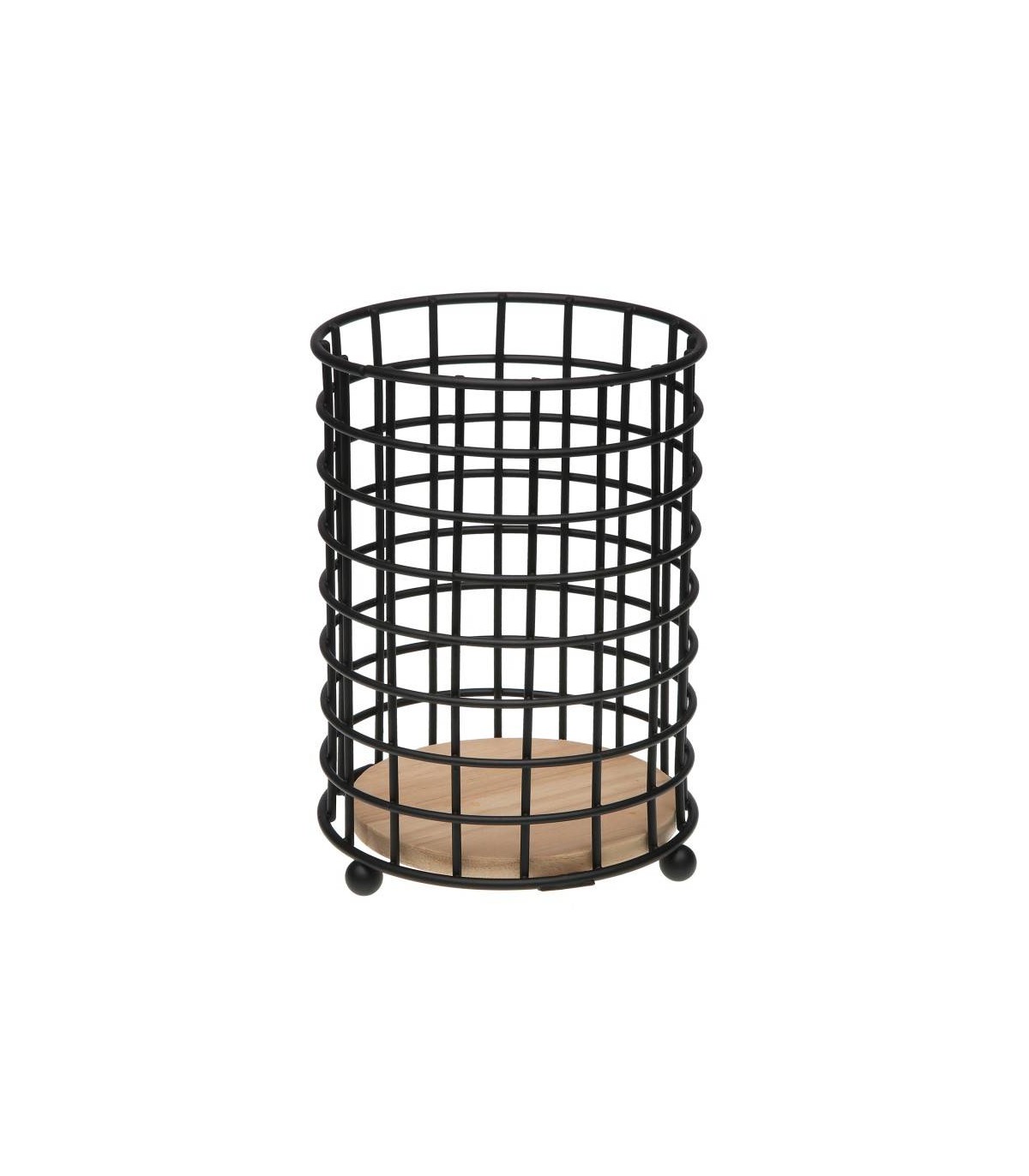 Soporte Utensilios cocina Metal/madera Negro Ø13x18cm 82704