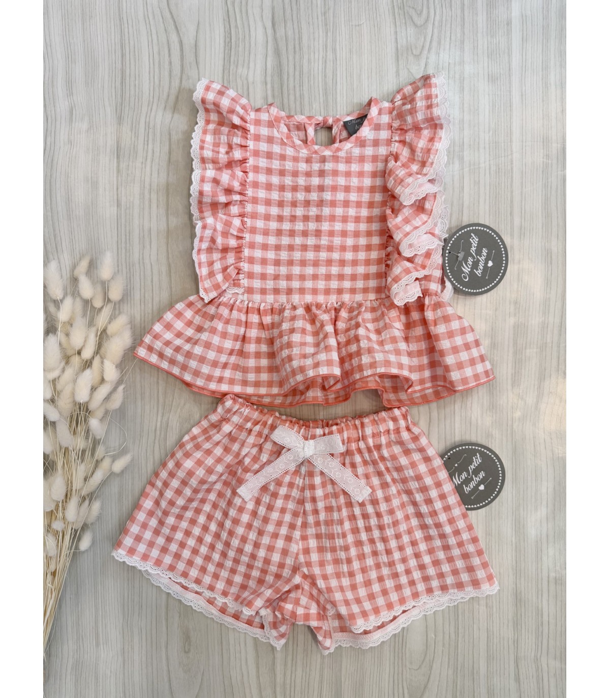 CAMISA+SHORT VICHY MELOCOTON MON PETIT BON BON VM034/6