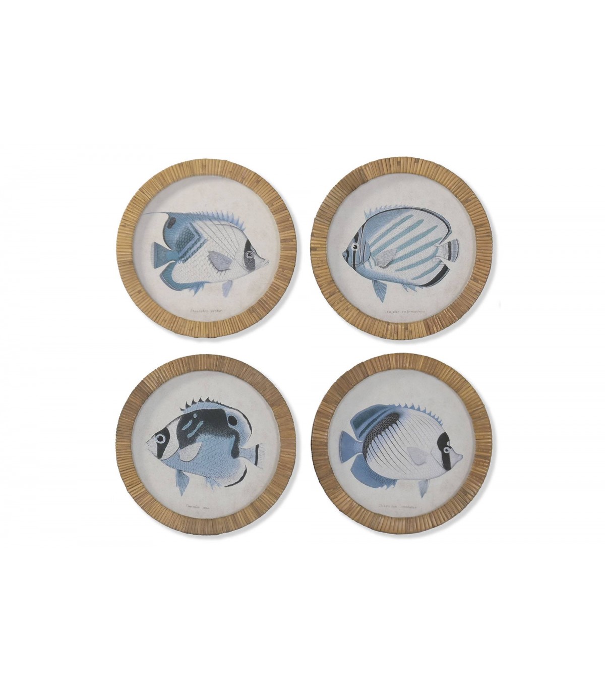 SET/4 CUADROS CRISTAL/RATAN PEZ Ø30CM CU-224326